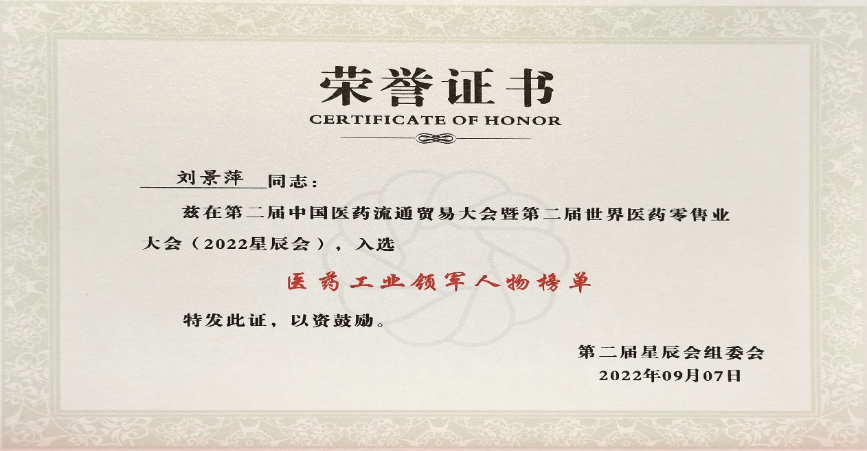 本次星辰会期间,EBpay斩获颇丰,获得多项行业奖项及荣誉。在开幕式上,刘景萍董事长荣获“医药工业领军人物”称号。